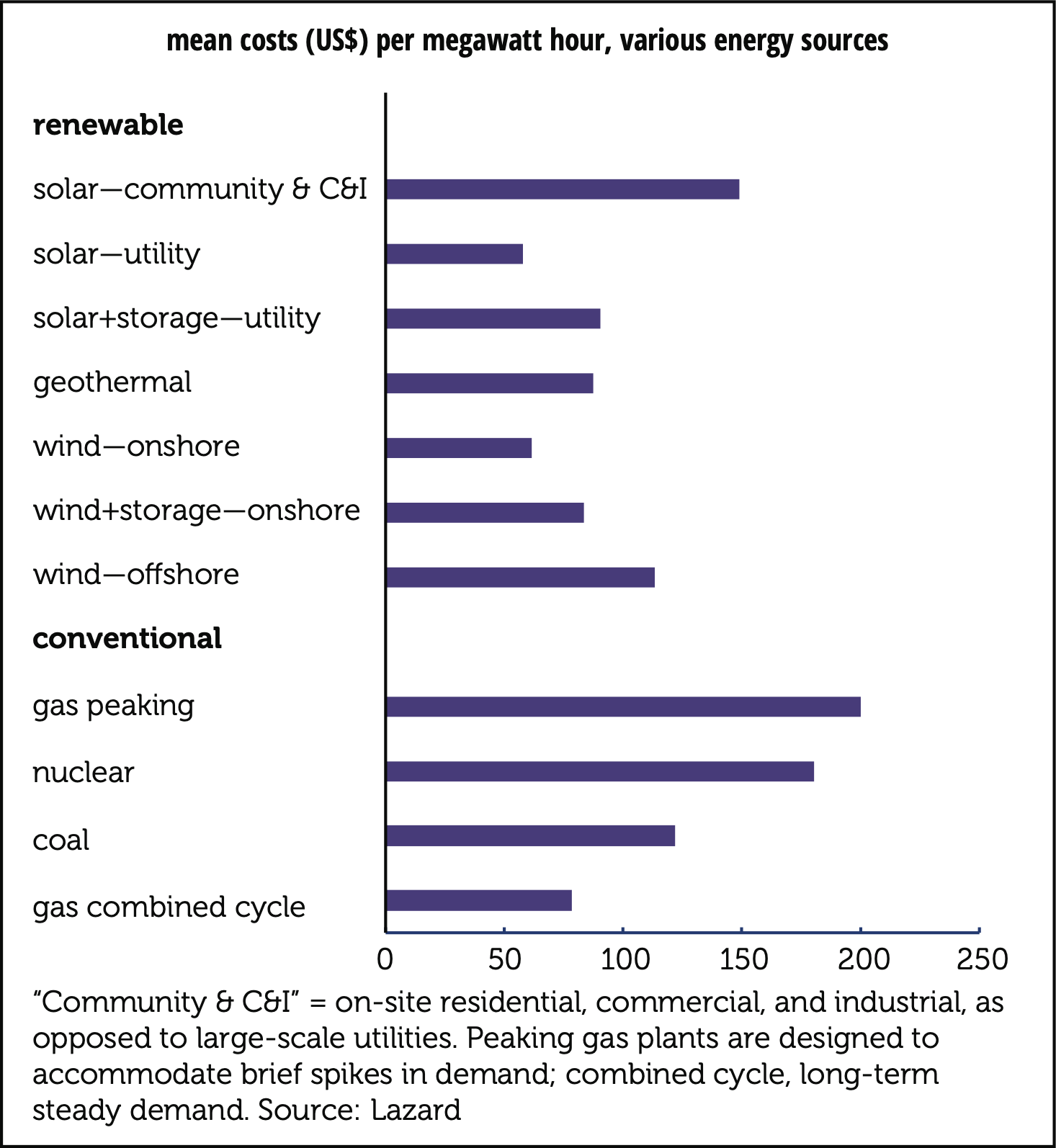 Sadly, US policy is paddling against this current. As we were writing this, news came in that the Trump administration was intensifying its previously declared war on windmills, assembling a joint task force staffed by six cabinet agencies to put an end to what the president sees as an ugly (tastes differ) and expensive (it’s not) energy source. (He also hates solar, but he’s carrying on that war with less intensity for now.) Instead, his administration is encouraging utilities to turn to more expensive options like gas and coal. Even if you’re a skeptic on climate change, this emphasis makes little economic sense.